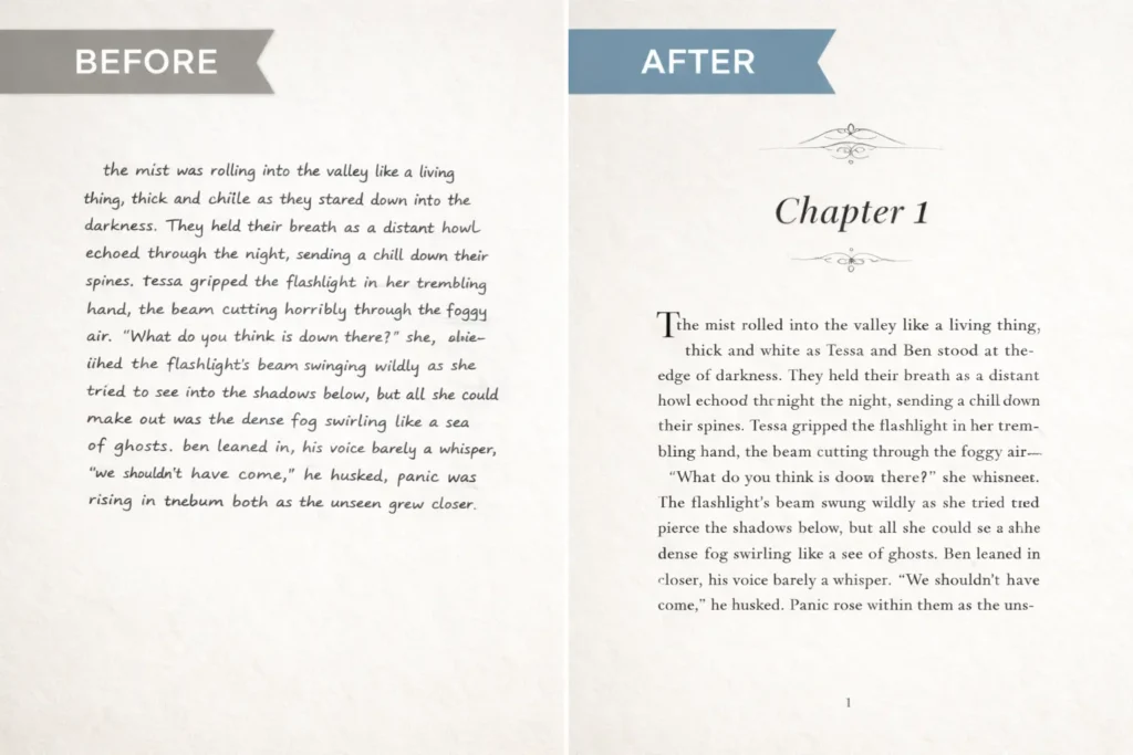 Interior book design and formatting transforms your manuscript into a professionally structured, visually polished, and publication-ready book. Our designers combine clean layout design, precise formatting, and industry-standard practices to ensure your content is easy to read, visually consistent, and aligned with your genre expectations.