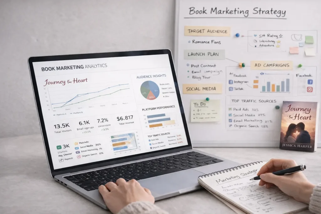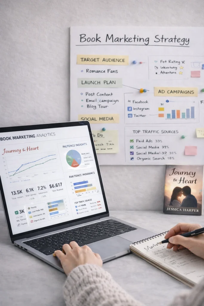 Emotion-focused cover visuals, elegant typography, and soft color palettes aligned with common romance publishing styles.